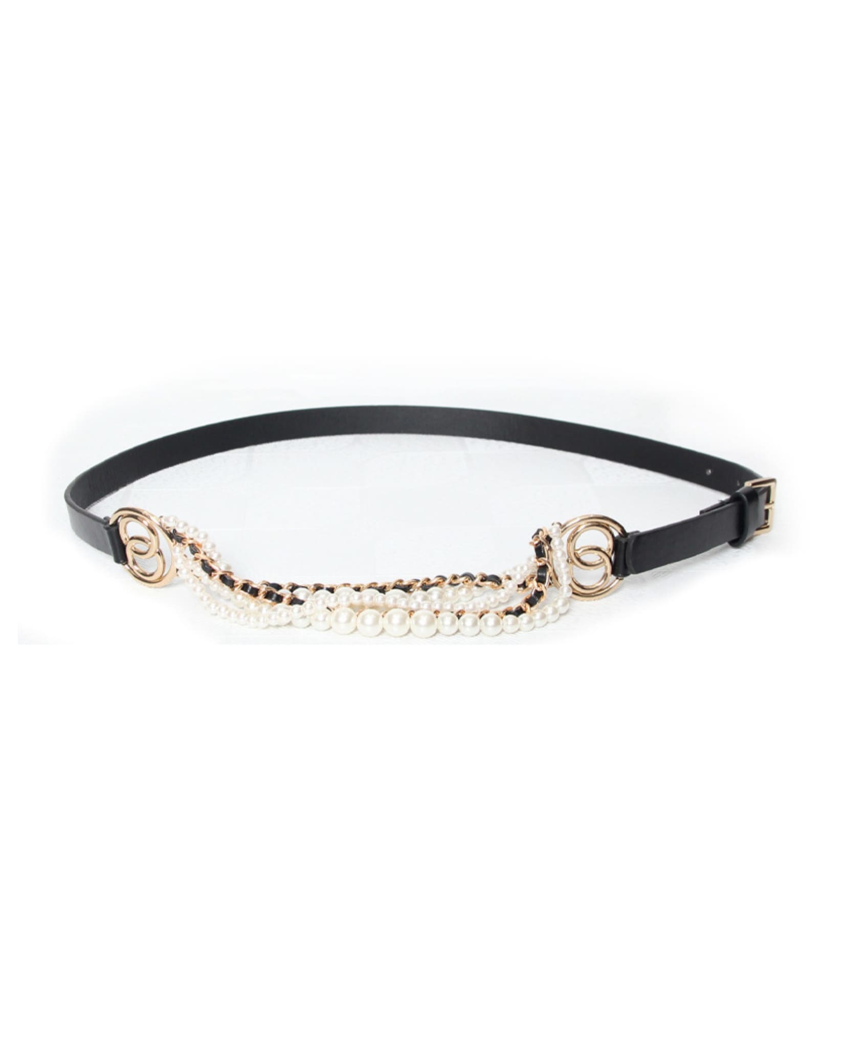 Add a touch of elegance to your outfit with our "Pearl And Chain Decorated Belt". Designed with pearl and chain accents, this belt adds a statement touch to any outfit. Its adjustable length makes it versatile for pairing with anything from jeans to dresses, ensuring a comfortable and customized fit.