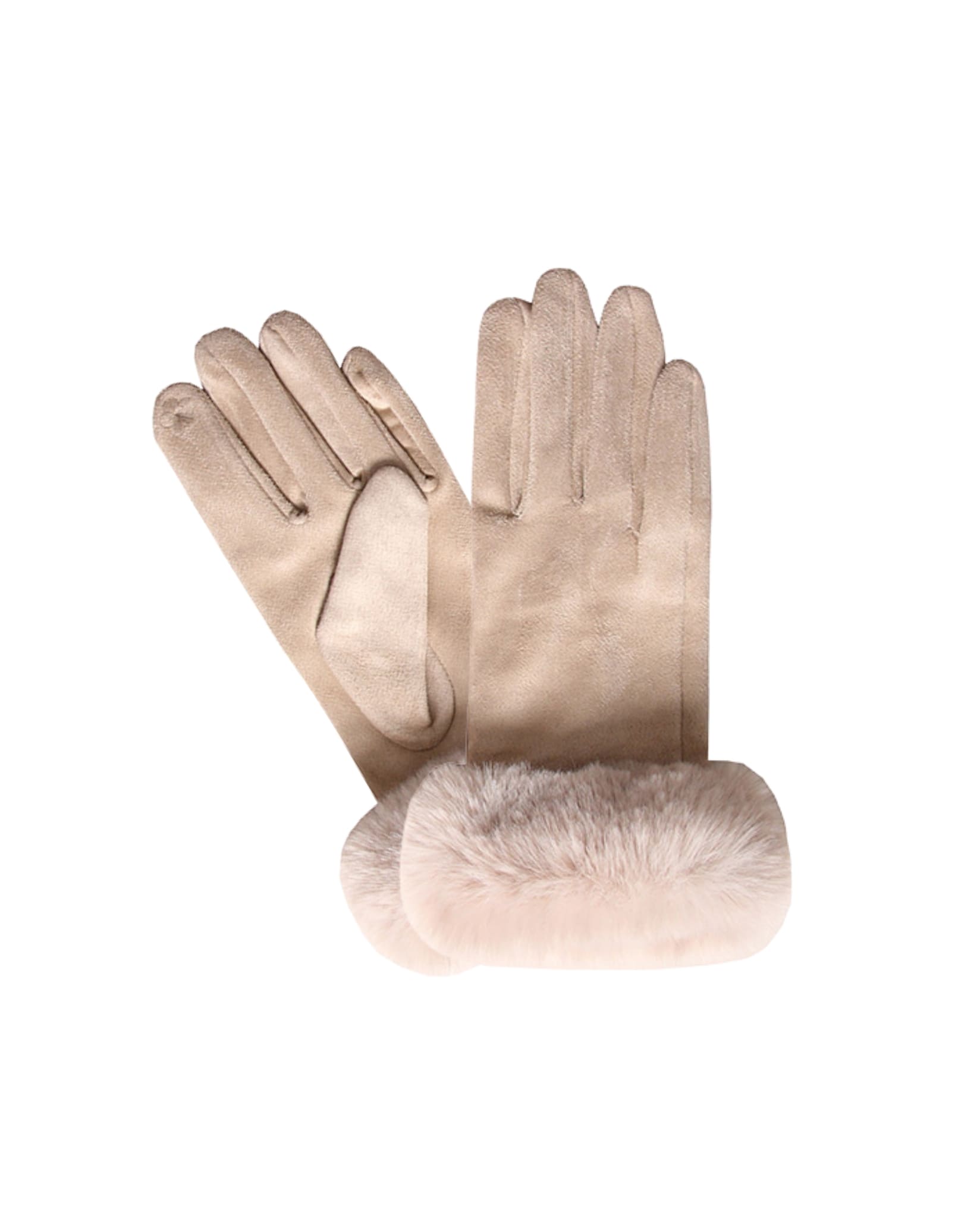 These beige gloves are a must-have accessory for the cooler months. The soft material ensures a comfortable fit and luxurious feel with every wear. Beautiful faux fur adorns the wrists and adds a touch of glamour to any outfit.