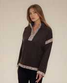 Brown Contrast Knit Pullover
