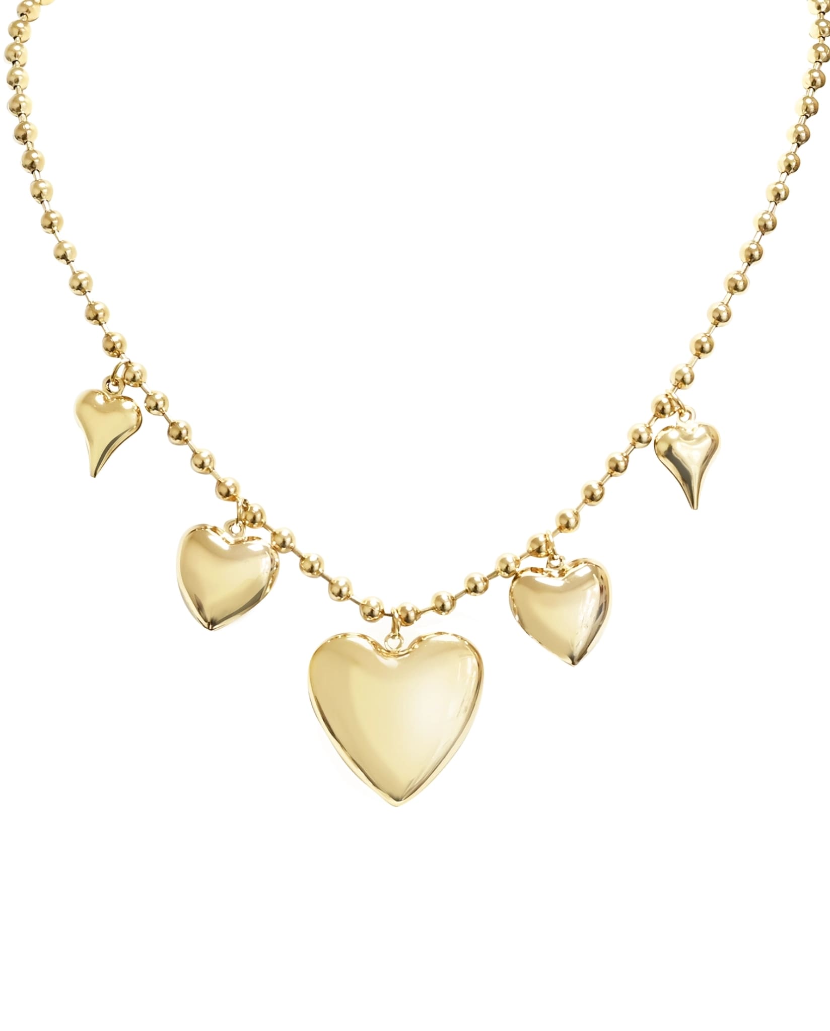 A statement-style necklace featuring multiple heart-shaped charms on a classic beaded chain. Made from stainless steel with a smooth, polished finish. A playful yet easy-to-wear piece that adds interest to any look.