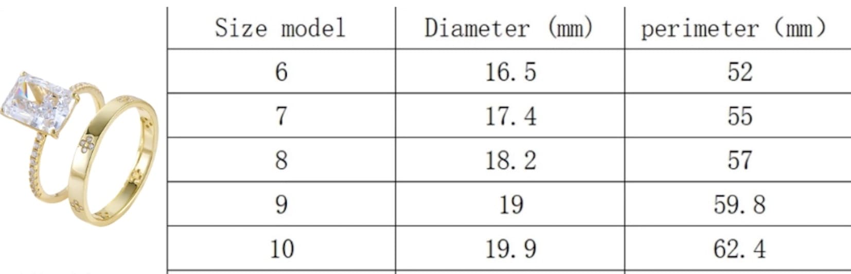 A beautifully coordinated ring set featuring a radiant-cut centerpiece ring and a sleek band adorned with delicate floral accents. Crafted from 925 sterling silver and plated with 14K gold, this set offers a timeless and elegant look. Whether worn together or separately, these rings add a beautiful touch to any outfit.