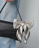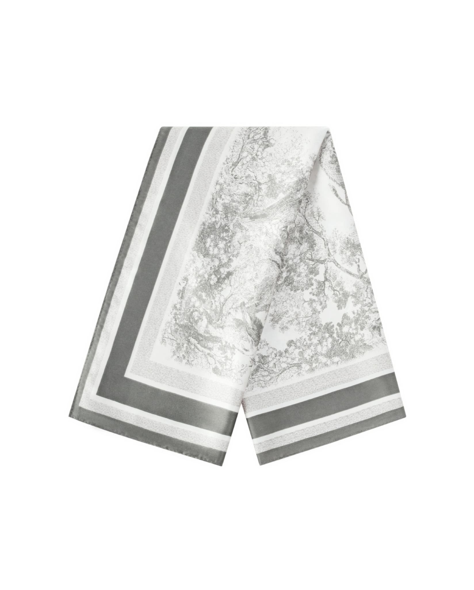 A lightweight square scarf with a monochrome toile-inspired print. Easy to style around the neck, in the hair, or tied to a bag for a classic everyday look.
