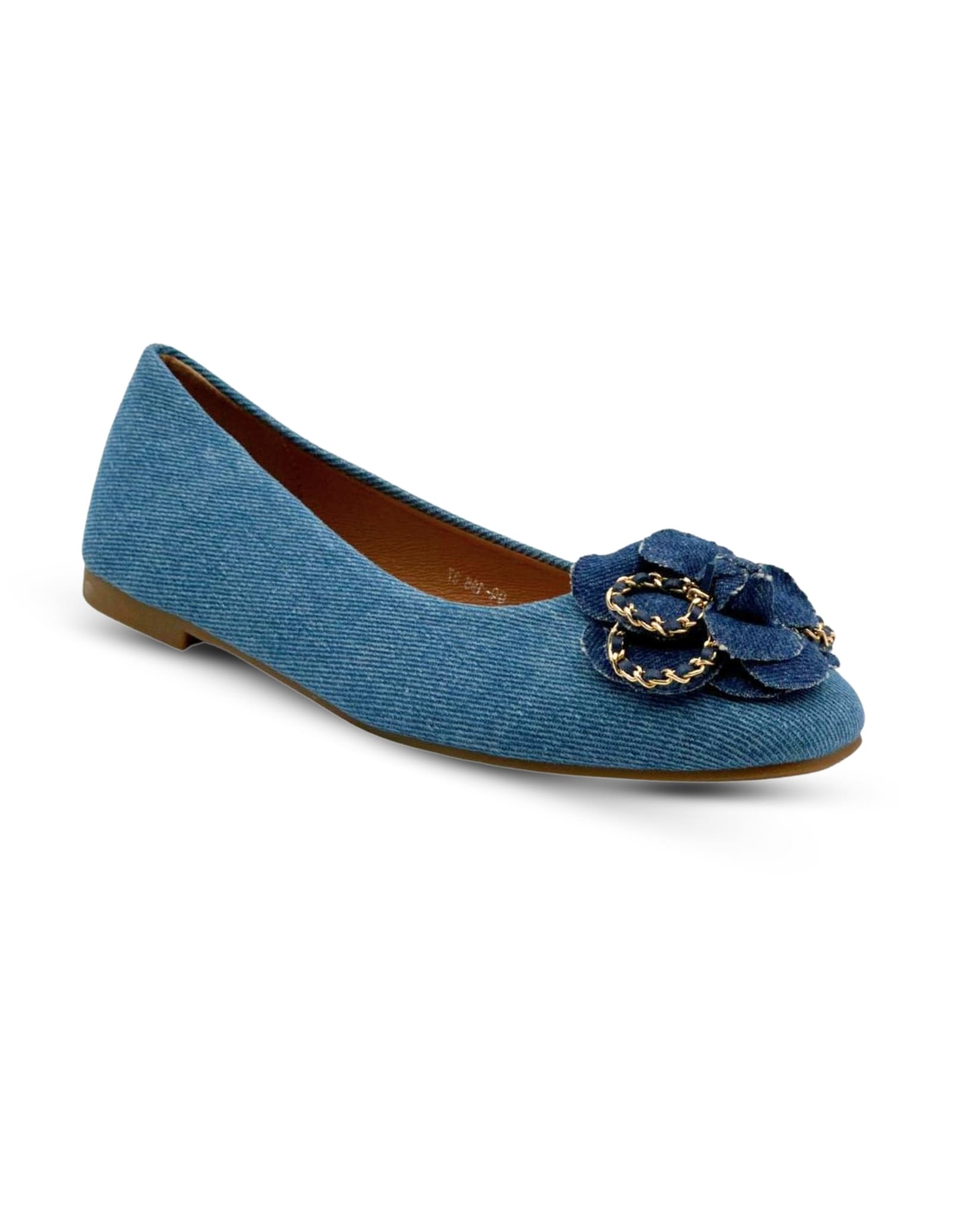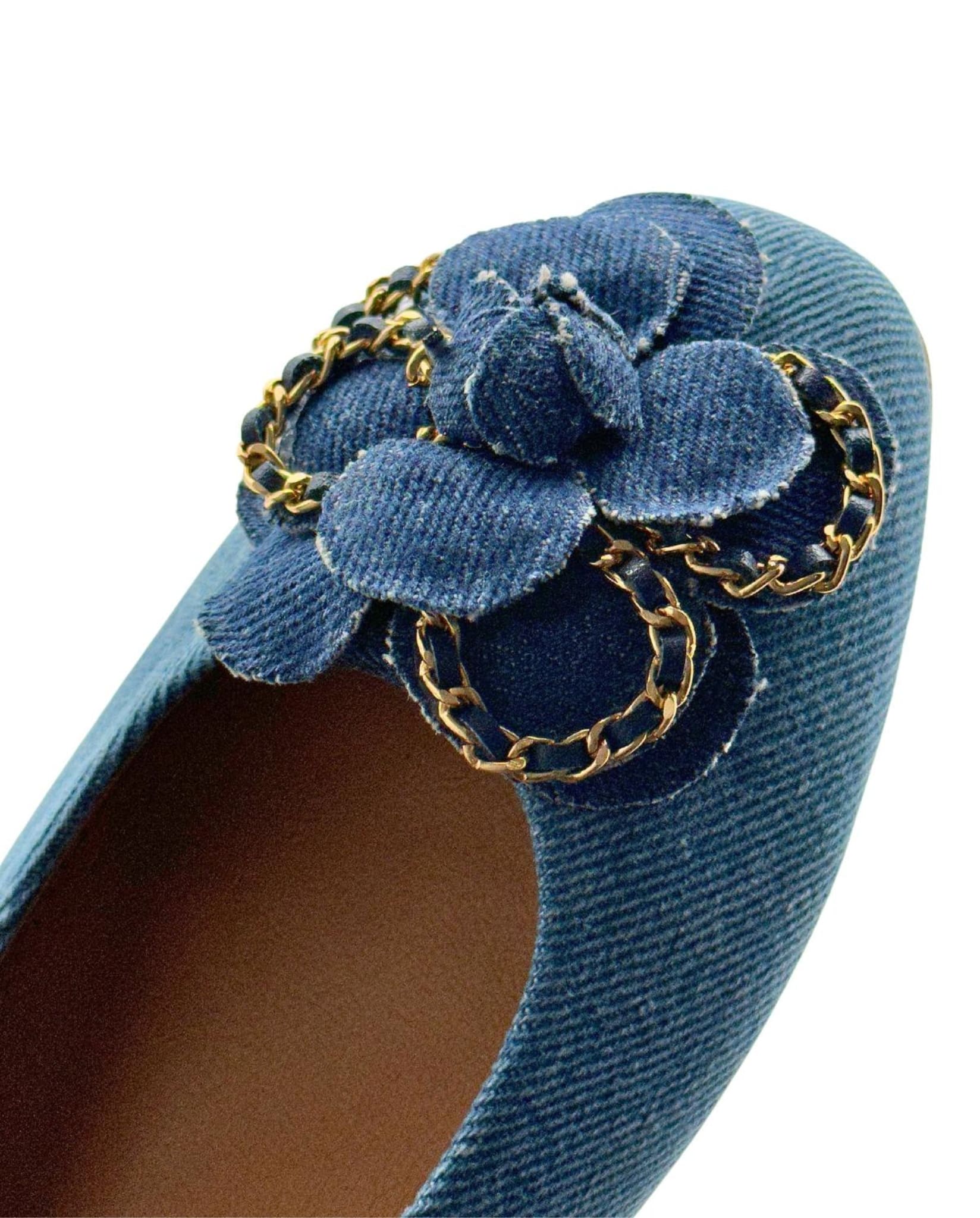 Brighten up your shoe collection with these denim ballet flats featuring a beautiful flower detail at the front. These ballerina shoes combine aesthetic and comfort, while their floral design brings a touch of elegance. Enjoy the blend of beauty and comfort with these must-have ballet flats.